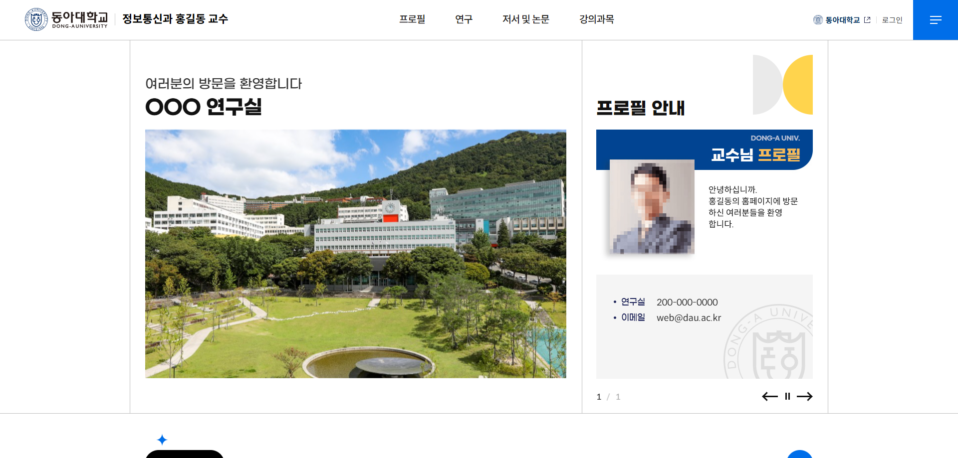 4. 동아대학교 메인 홈페이지 "교수소개"메뉴에 개인 홈페이지 링크 방법